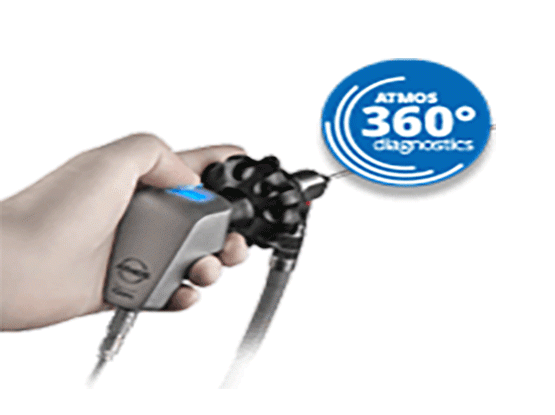 The ATMOS VideoScope is a compact, controllable, chip-on-tip endoscope that provides high image quality and PC connectivity via a USB connection. Videos and images can be saved thanks to the supplied video software. The additional version with a thinner insertion tube (ATMOS VideoScope PED) offers greater patient comfort during the examination and allows for its use in pediatrics.